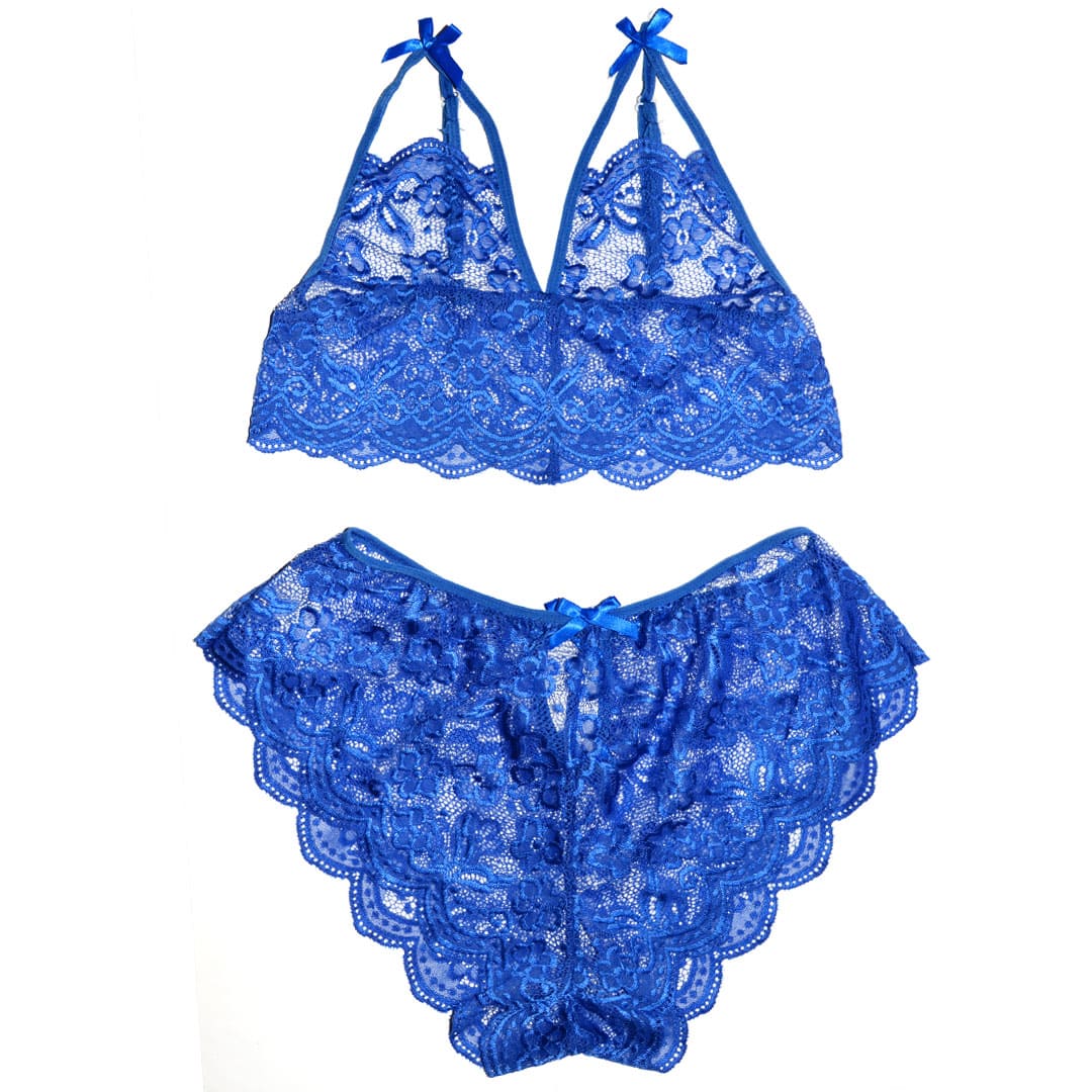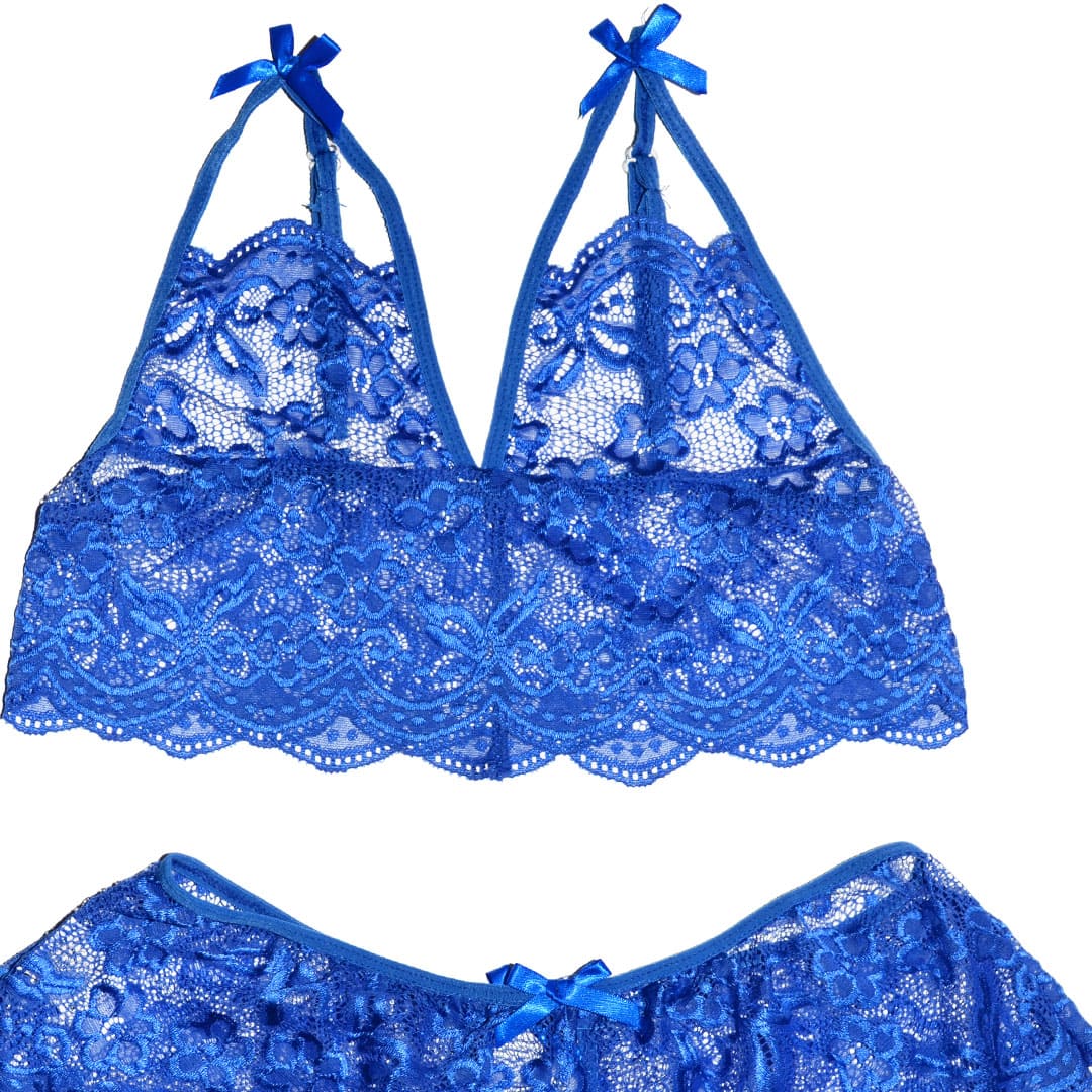 Синій еротичний комплект (ігровий костюм, костюм для рольових ігор) бюстгальтер та труси з квіткового мережива.