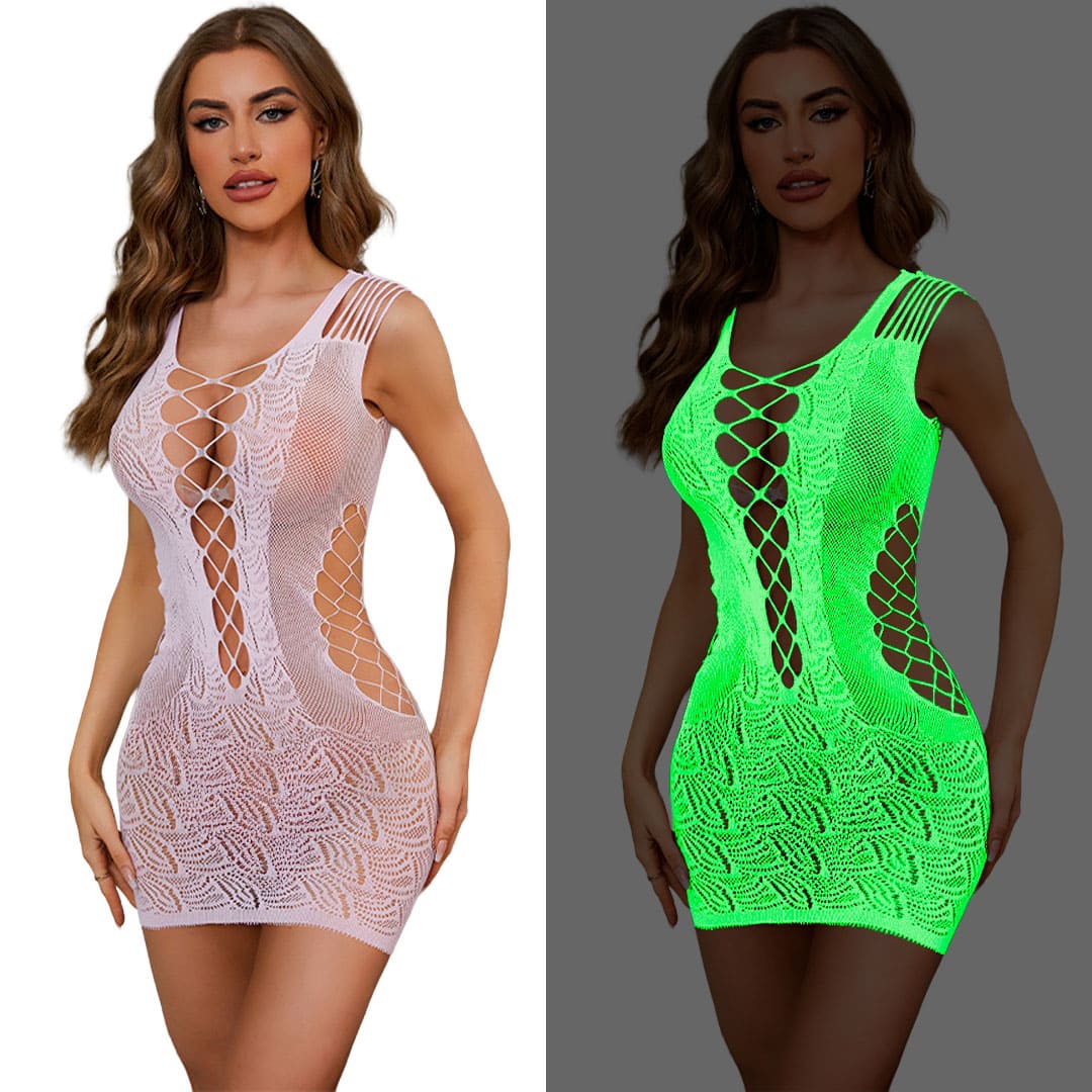 Колготки білі, що світиться в темряві салатовим у велику сітку із поясом-резинкою та з ефектом люмінесценції (накопичує світло а потім світитися в темряві).