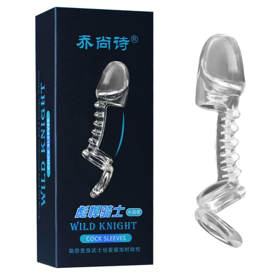 Еластична насадка Пролонгатор Wild Knight на член використовується для продовження статевого акту за рахунок зниження чутливості головки яку вона повністю закриває і кільця біля основи, ребриста планка вздовж члена додатково стимулює піхву жінки.