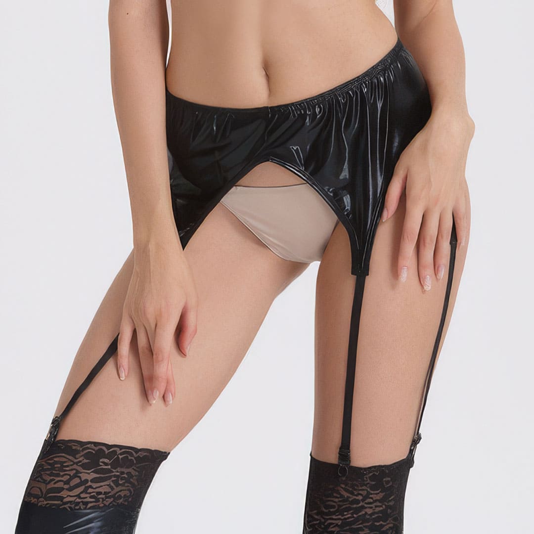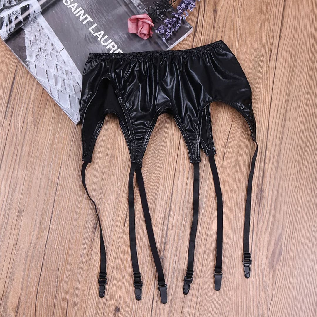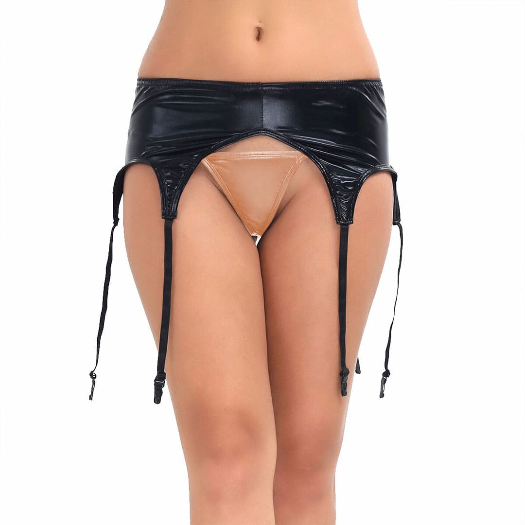 Блискучий пояс для панчох (без панчох) металік (з диско-трикотажу, біфлекс з напиленням) на гумці, вшиті шість підв'язки для панчох, що регулюються.