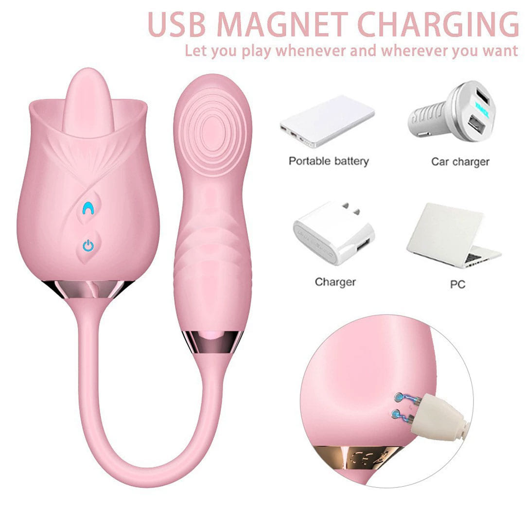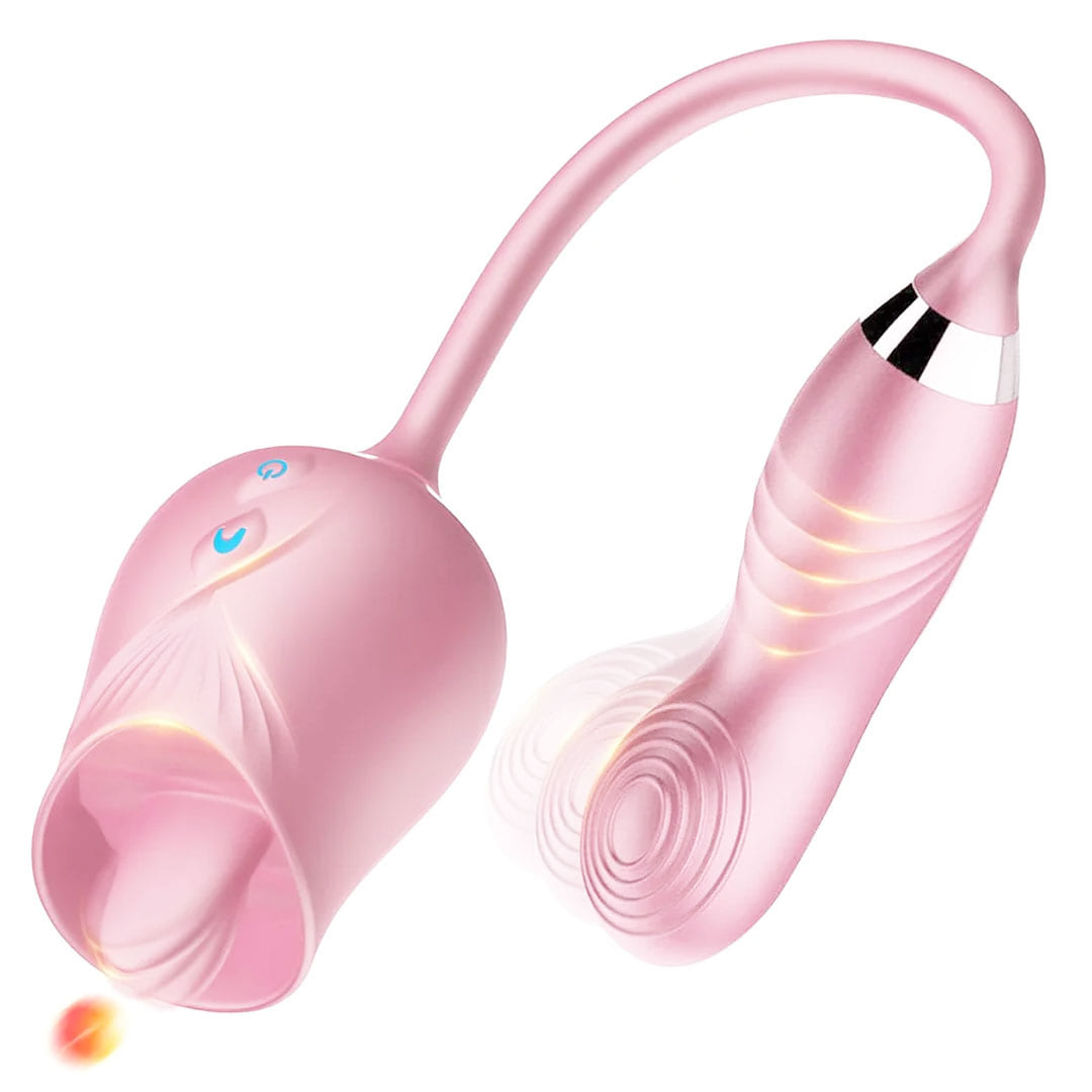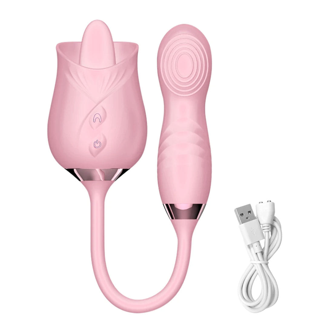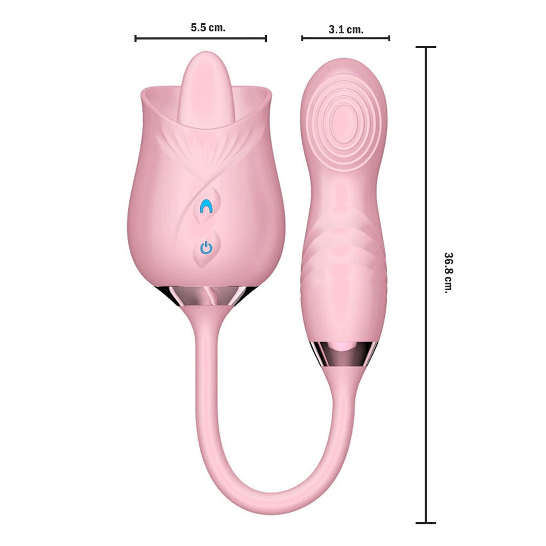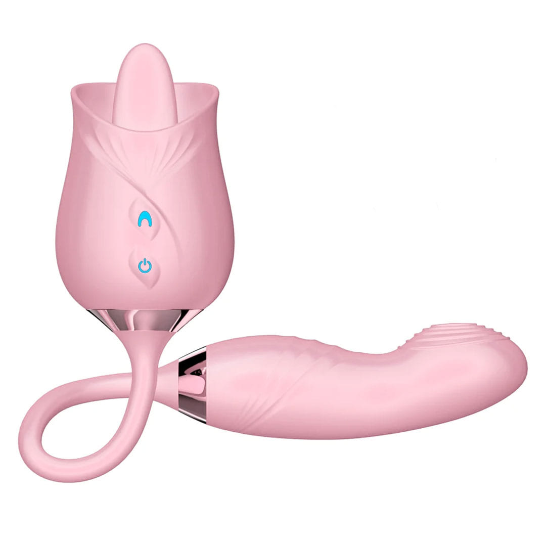 Цей подвійний рожевий силіконовий вібратор поєднує розу з язиком для стимуляції клітора та вібраційну стимуляцію точки G, дозволяючи використовувати обидві функції одночасно або почергово. М’який медичний силікон, ергономічна форма cтворюють ідеальний баланс ніжності й інтенсивності.