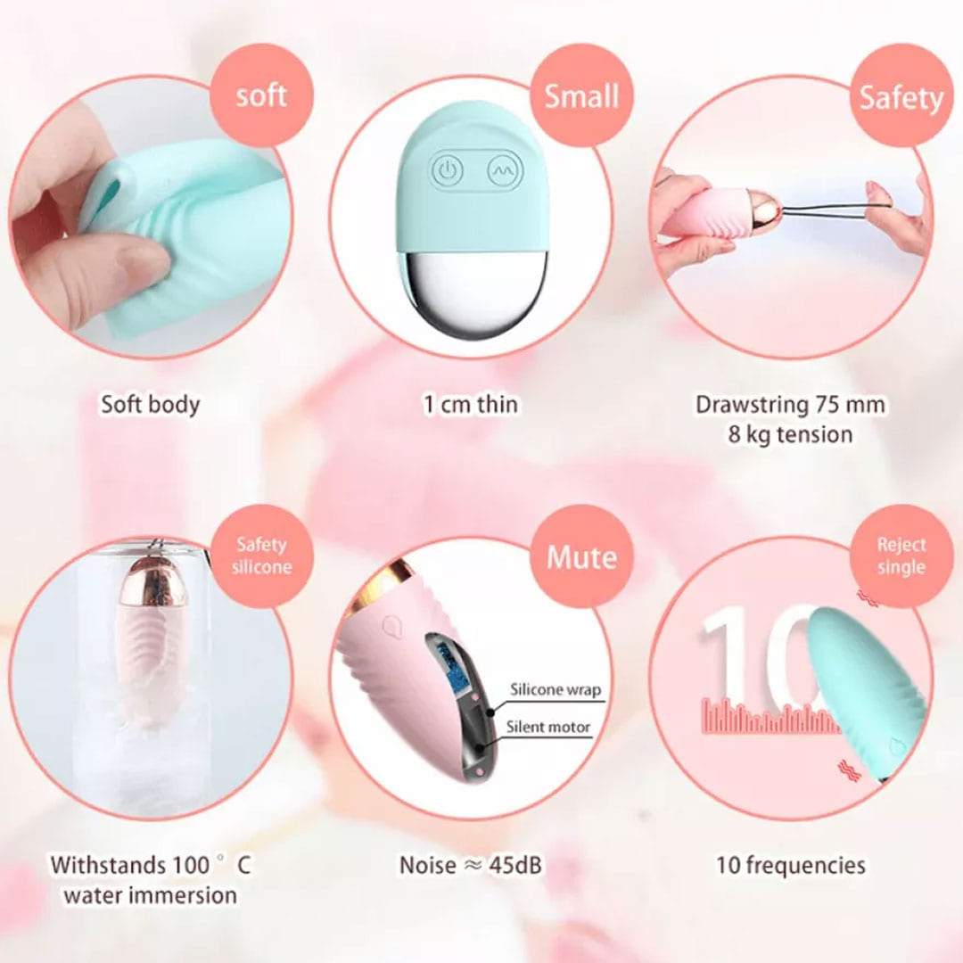 Бірюзове багатошвидкісне віброяйце з дистанційним пультом створене для інтенсивної вагінальної стимуляції.