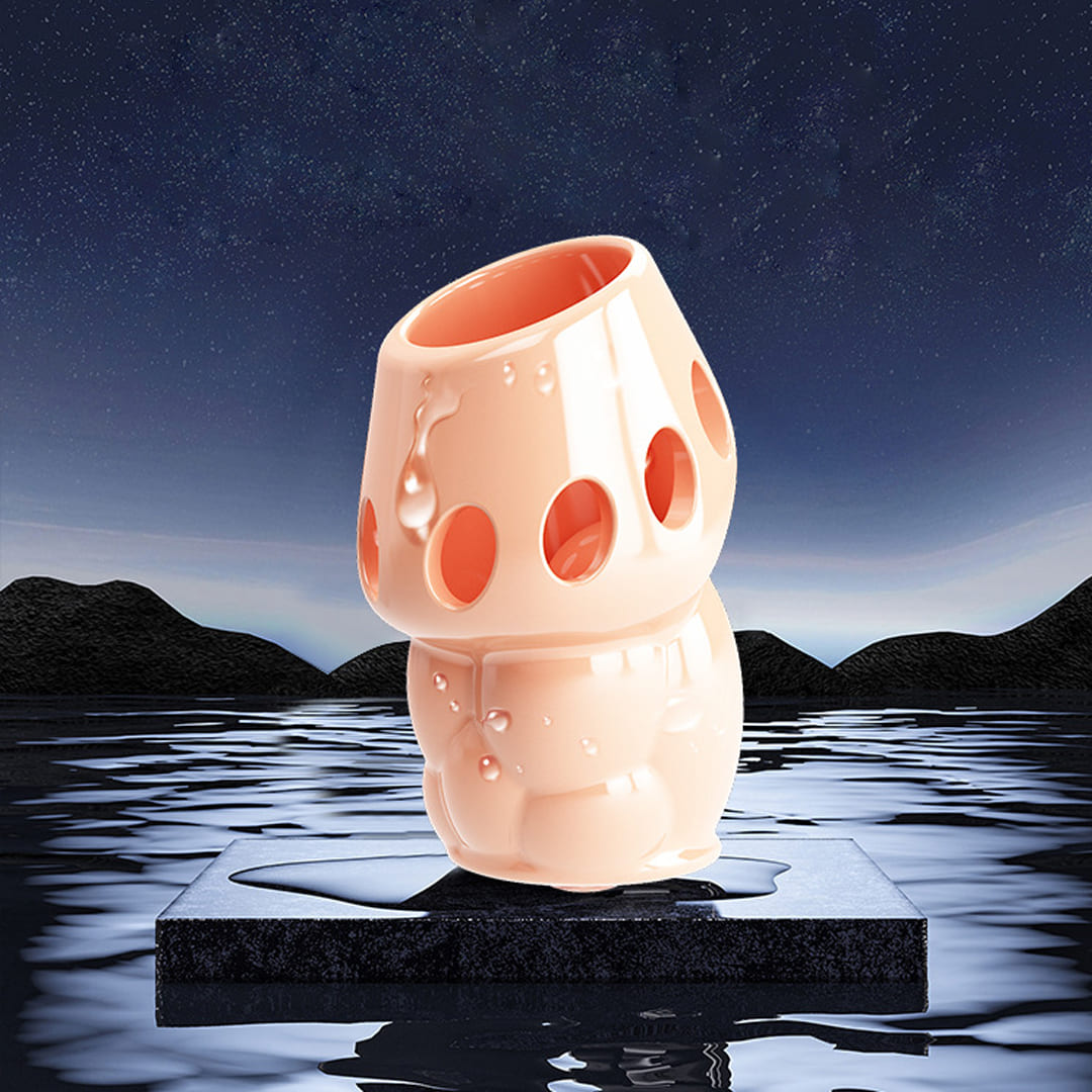 Бежевая эластичная насадка Пролонгатор Pretty Love Oscar на член используется для продления полового акта за счет снижения чувствительности головки которую она полностью закрывает.