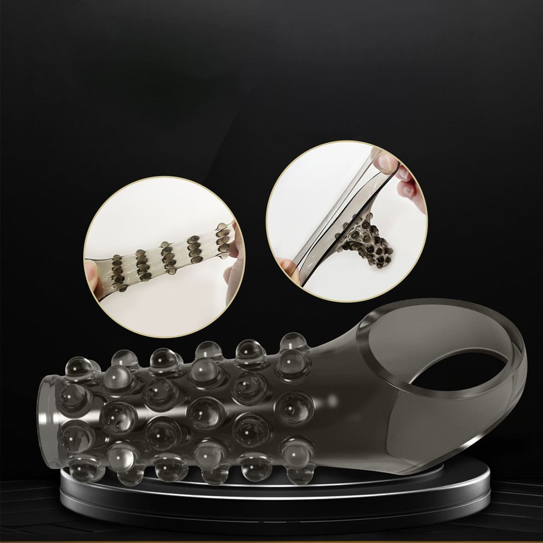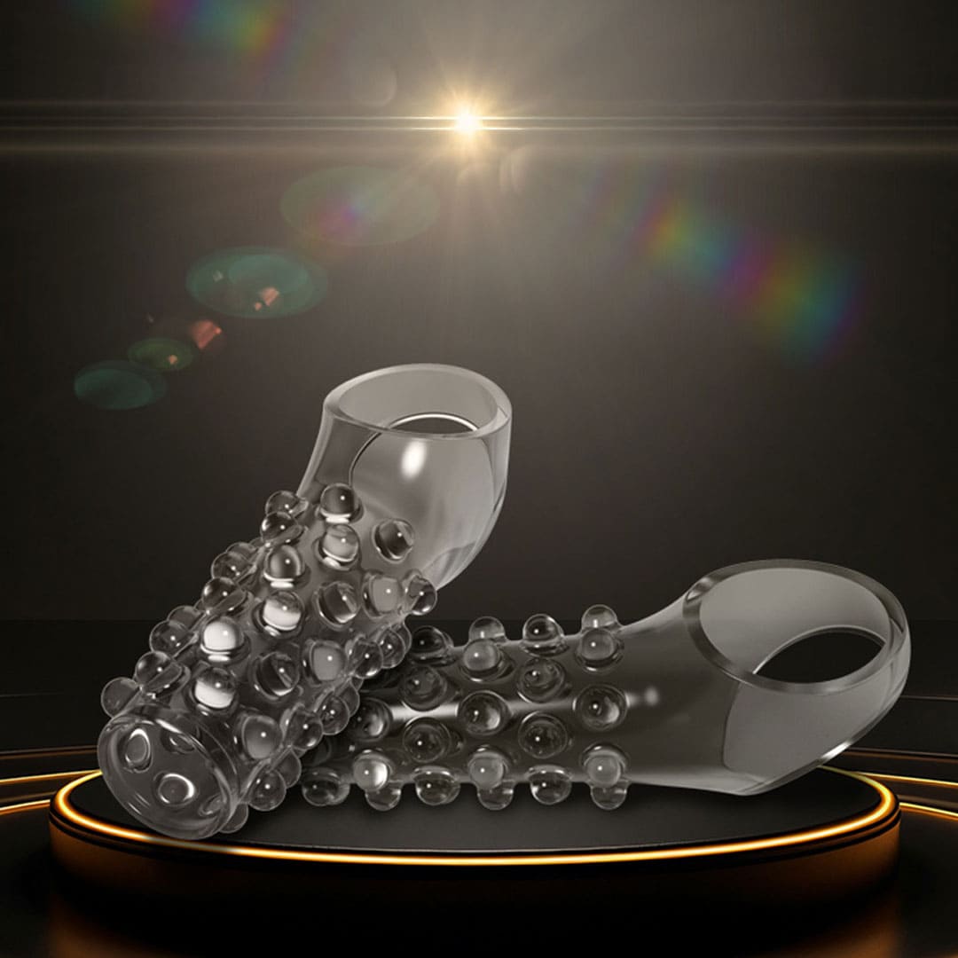 Эластичная прозрачная рельефная насадка на член и мошонки используется для дополнительной стимуляции влагалища во время проникающего полового акта, усиления эрекции у мужчин, продления полового акта.