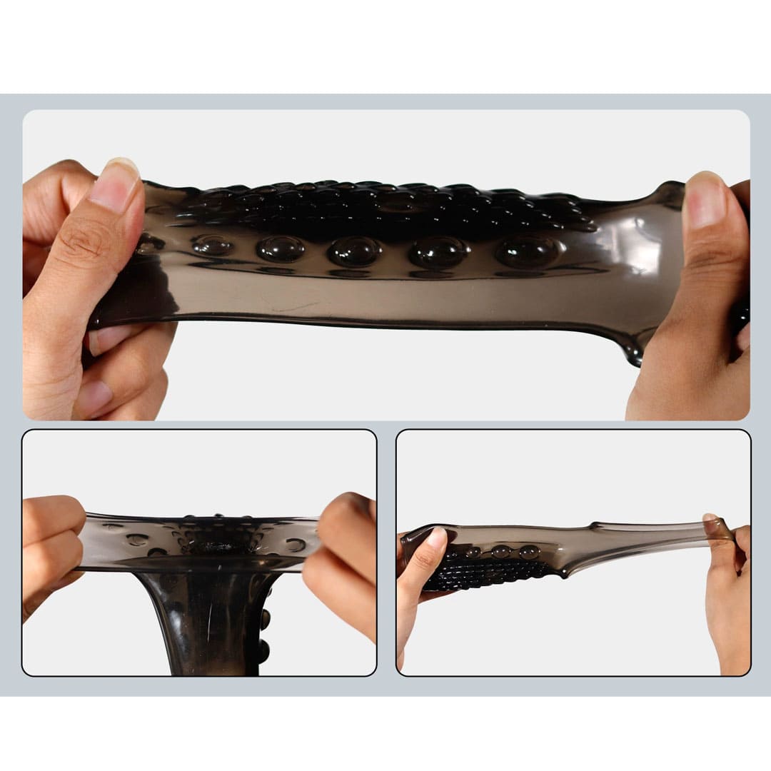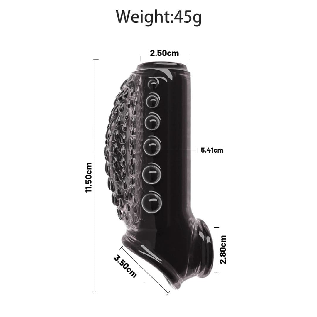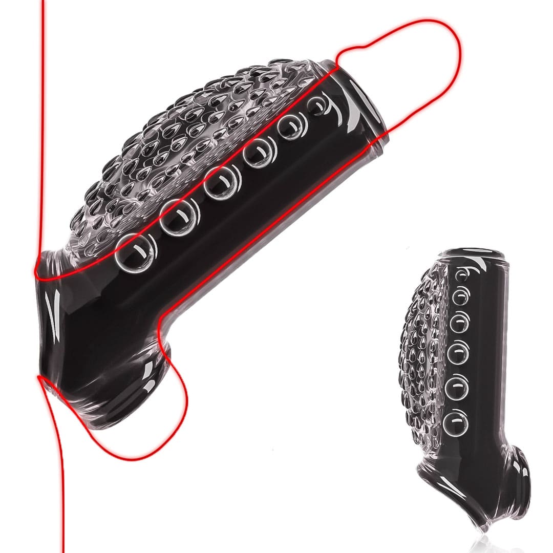 Эластичная черная рельефная насадка на член Crocodile, используемая для дополнительной стимуляции влагалища во время проникающего полового акта, увеличивает размер члена.